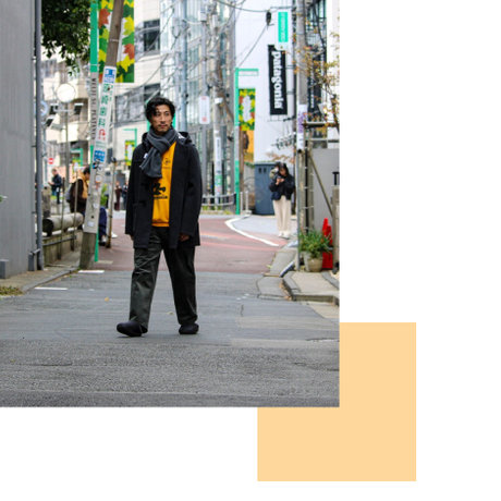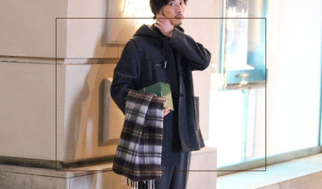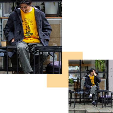 昼のリラックスした空気と夜のドラマチックな雰囲気、どちらにも自然に寄り添うのが、このダッフルコートです。