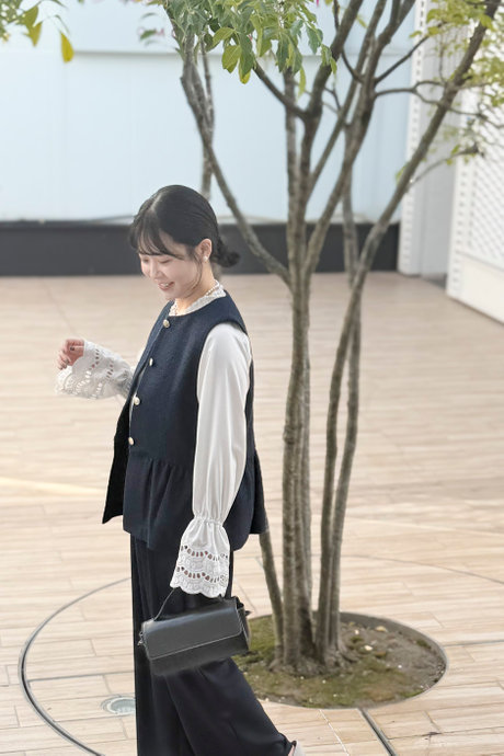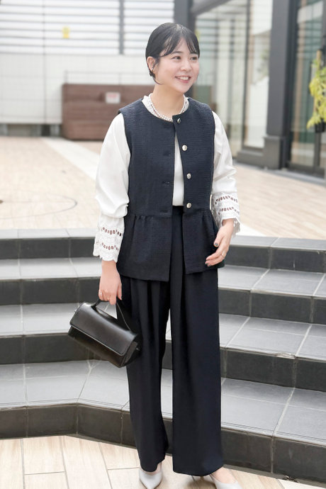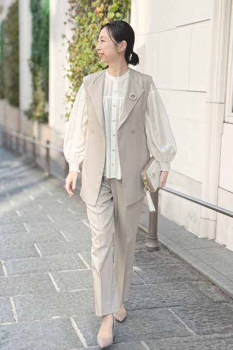 「ベスト×パンツ」コーデ