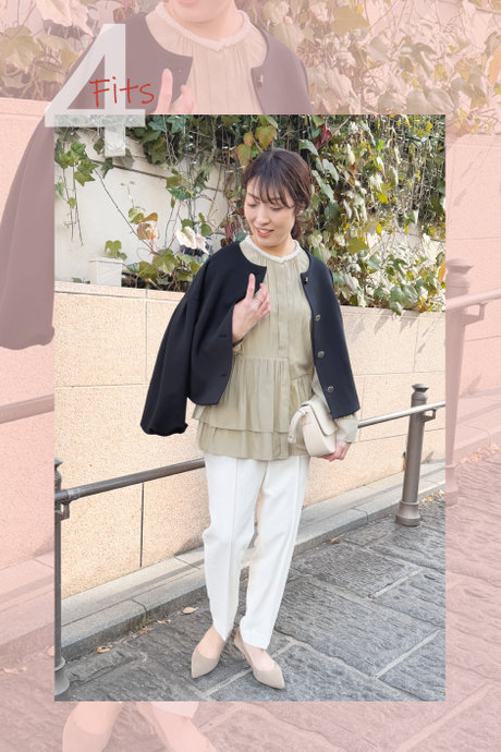 ペプラムシルエットが品良く優しげなムード。