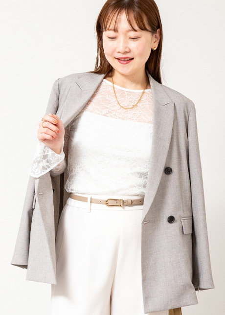 端正なジャケットスタイルも