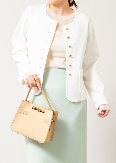 ノーブルなノーカラージャケットは