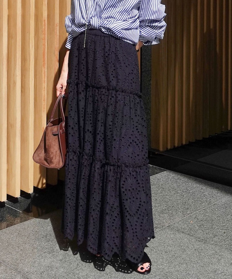 ・コーデに華をプラスしてくれるエンブロイダリーレースのロングスカート