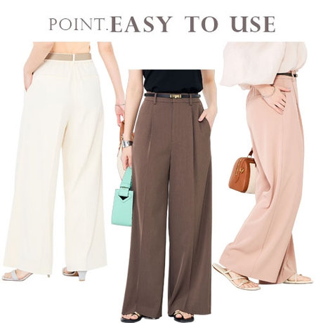 ”超強撚ストレッチツイル素材”を使用したワイドパンツ。