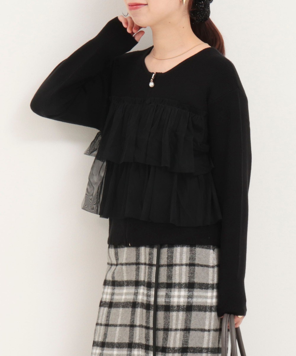 ラメモール前立てフリル付きカーディガン