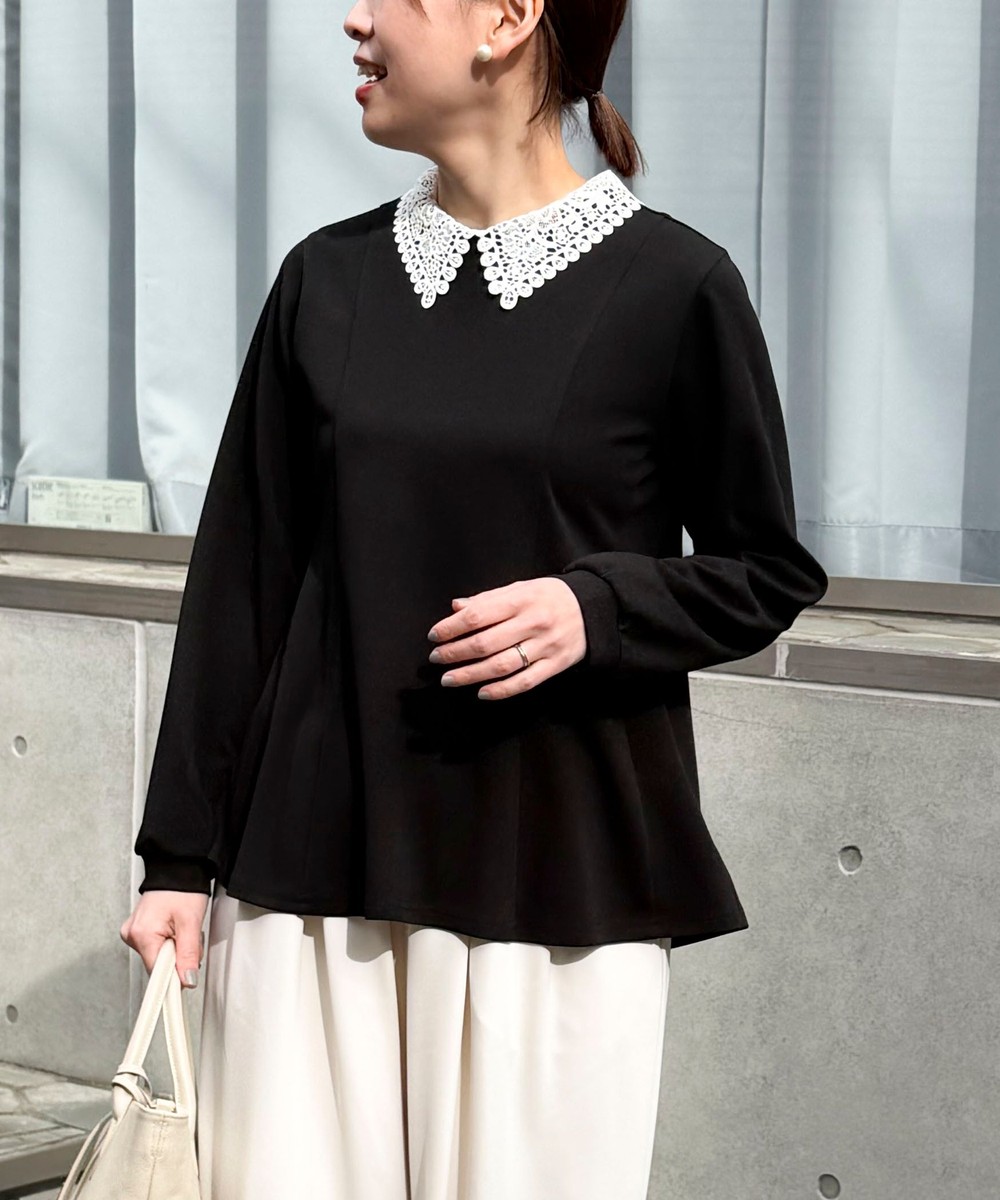 ウォッシャブルストレッチレースペプラムプルオーバー