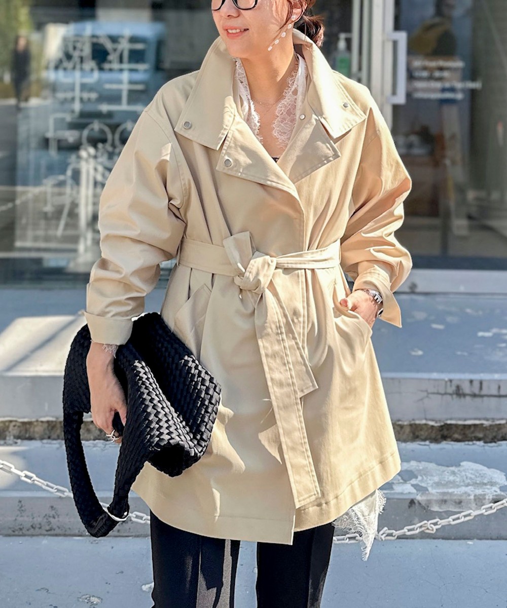 [FREDY&GLOSTER限定 TIME SALE!]【2サイズ展開/春アウター】リネン混タンブラーステンカラーコート