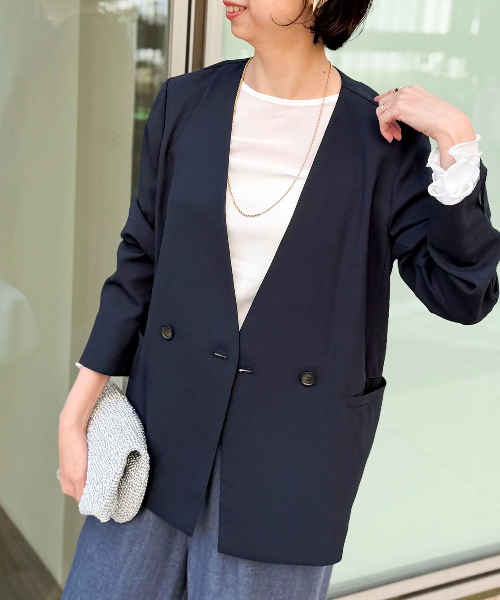 《セットアップ対応》ウォッシャブルハイスペック麻調ダブルジャケット
